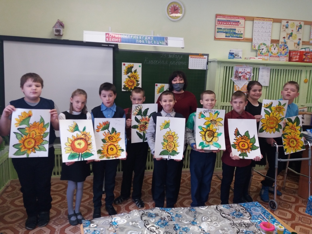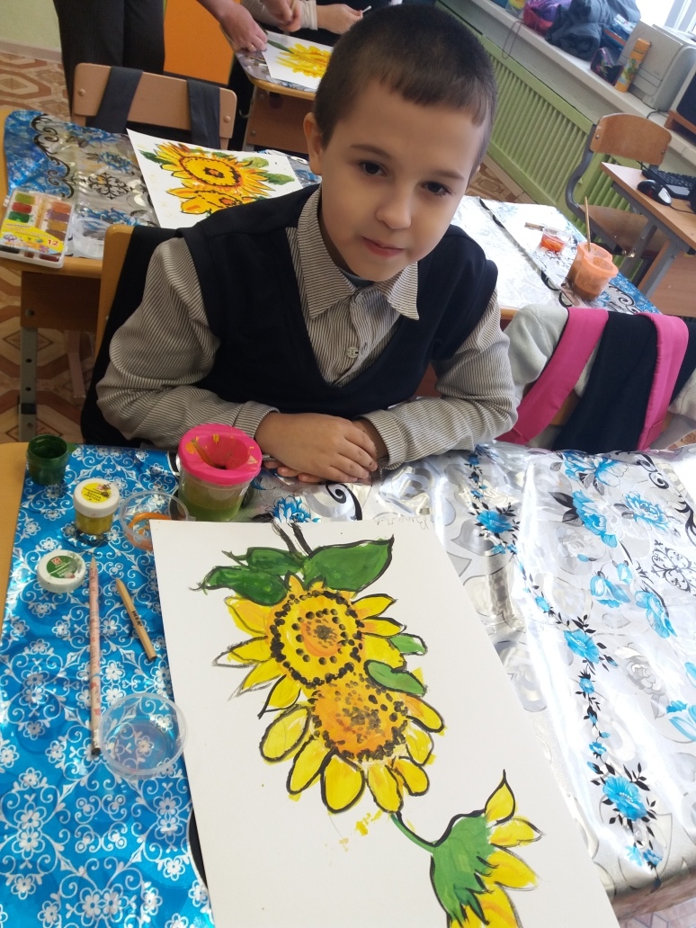 Жирафы и подсолнухи, закаты, дельфины – чего только не придумали для особенных детей художники-педагоги: Татьяна Пермякова, Анна Яковлева, Марина Попова, Юлия Пислегина, Татьяна Шабалина, Людмила Брагина! Разве есть лучшая награда для учителя, чем счастливые глаза детей, удивленных своими работами: «У меня получилось»!