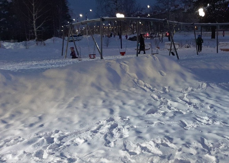 Нашу прекрасную детскую площадку на площади у ДК заносит снегом. Помимо установленных горок рядом вырастают горки снежные, бугры затрудняют движение, а чтобы покатать детей на качелях родители вырывают под ними окопы. Внутри горок тоже припорошено, мерзлый пластик становится еще более скользким и травм удается избежать с трудом. В чем дело? Наведались сюда несколько раз, а дворников невидно и скамейки спят в сугробах. Наши дети, конечно, подвижные, но и им столько снега не утоптать. В администрацию города направлен официальный запрос с просьбой прояснить, кто должен чистить площадку и будут ли это делать вообще. Ни ответа, ни привета, ни человека с лопатой.