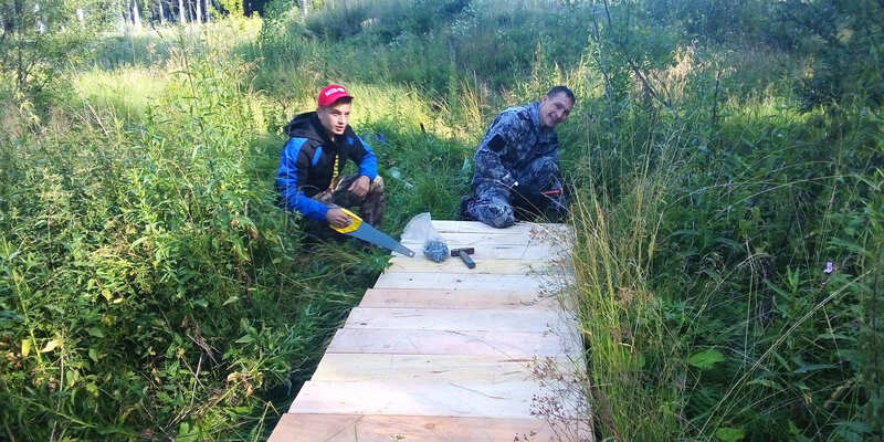 Долгое время в роще между домом №24 и улицей Набережная через безымянный ручеек лежали хлипкие подгнившие доски, которые в дождливую погоду и вовсе утопали в воде. В этой местности часто гуляют пенсионеры и пересекать канаву по такой опасной конструкции решались немногие. Чета Николая Васильевича и Лидии Петровны Ведерниковых, первостроителей Качканара, обратились к волонтерам за помощью.